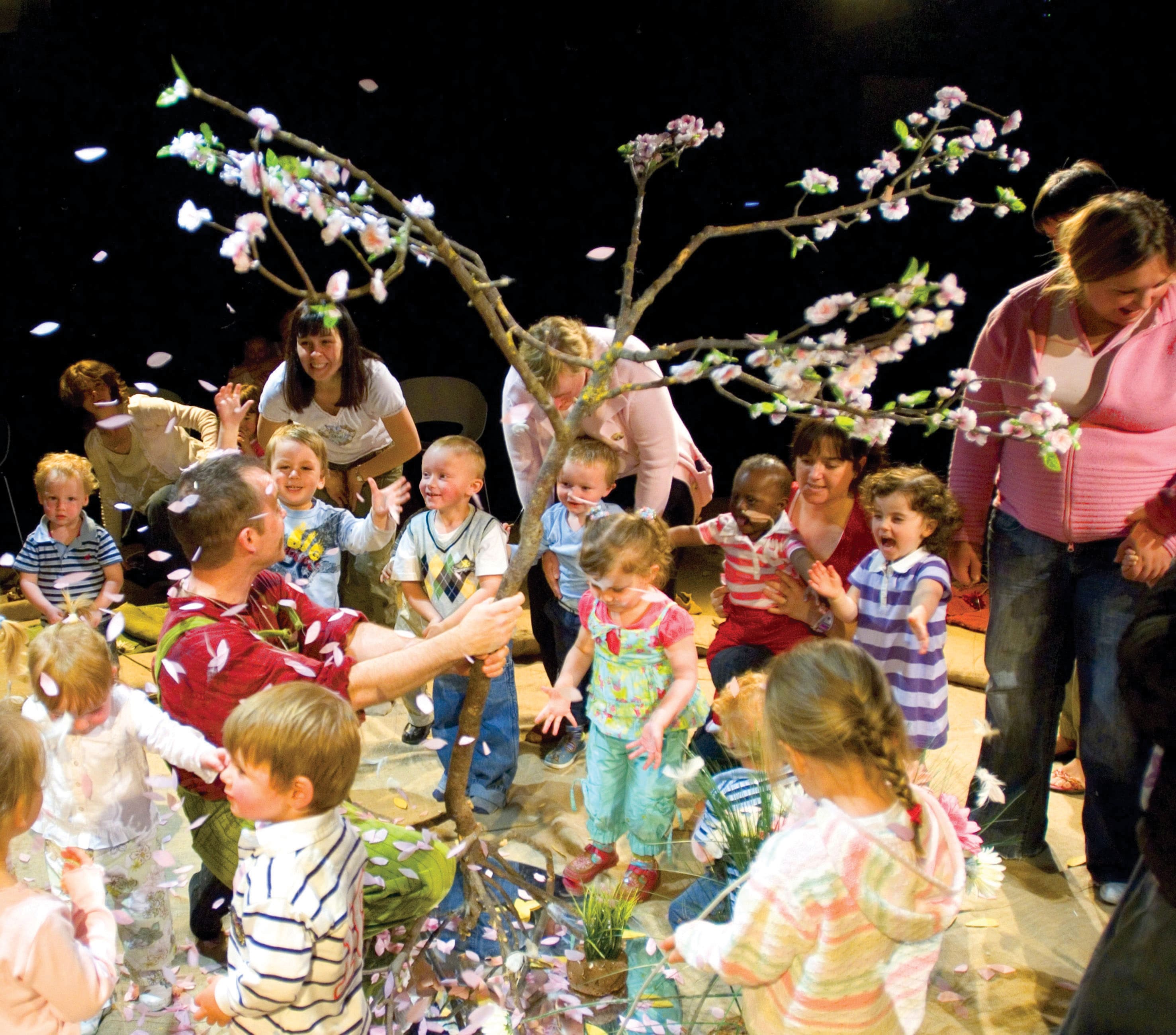 Children will sit on cushions around the performance space. Adults are invited to sit behind their children or on chairs.