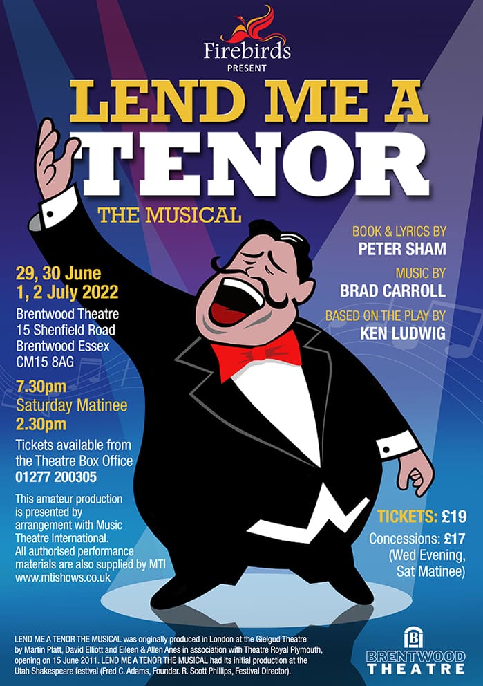 Firebirds return to bring you this hilarious farce based on the play Lend Me A Tenor by Ken Ludwig – with music by Brad Carroll and book and lyrics by Peter Sham. Cleveland Opera House has a big opening night planned and is expecting world-famous operatic tenor Tito Merelli to head the cast – but where is he? After much confusion and mayhem someone must go on to play the lead role and save the day – but who?