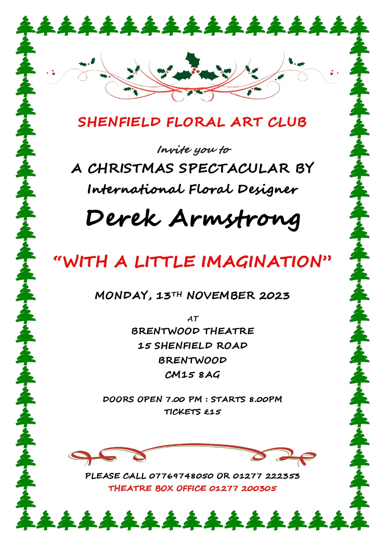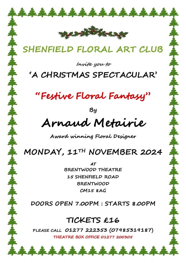 Shenfield Floral Art Club presents A Christmas Spectacular Shenfield Floral Art Club presents A Christmas Spectacular 11th Nov 2024 MORE INFO BUY TICKETS
